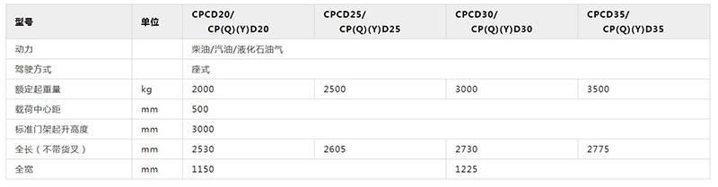 G2系列2-3.5噸內(nèi)燃平衡重式叉車技術(shù)參數(shù):